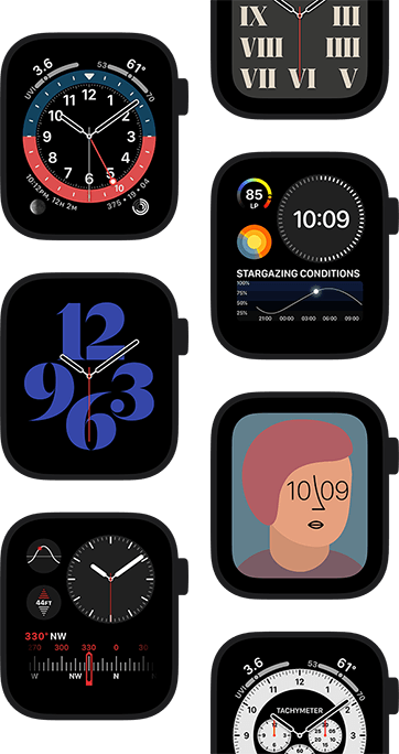 Atrodiet jaunus pulksteņa ciparnīcas tīmeklī vai App Store un dalieties tajos ar draugiem un ģimeni.