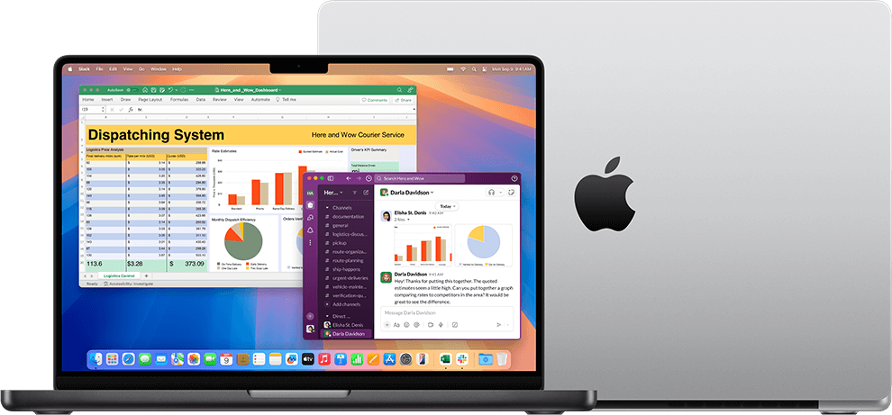 Līdz 14 stundām ilgāks akumulatora darbības laiks (kopā līdz 24 stundām):Testēšanu veica Apple no 2024. gada augusta līdz oktobrim, izmantojot pirmsizlaides 14 collu MacBook Pro datorus ar Apple M4, 10 kodolu CPU, 10 kodolu GPU, 24 GB RAM un 1 TB SSD. Akumulatora darbības ilguma tests bezvadu interneta režīmā tika veikts, skatot 25 populāras interneta lapas, kamēr bija izveidots savienojums ar Wi-Fi. Akumulatora darbības ilguma tests video straumēšanas režīmā tika veikts, atskaņojot 1080 p saturu Safari aplikācijā, kamēr bija izveidots savienojums ar Wi-Fi. Displeja spilgtums bija iestatīts uz 8 klikšķiem no apakšas un tastatūras apgaismojums izslēgts. Akumulatora darbības ilgums ir atkarīgs no lietojuma un iestatījumiem. Plašāka informācija: apple.com/batteries.