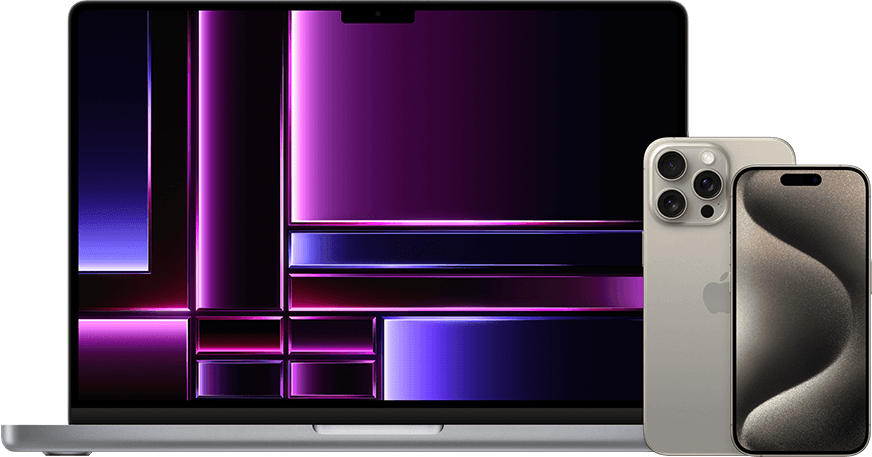 Displejs: Ekrāna lielums tiek mērīts pa diagonāli. Faktiskais 24 collu iMac ekrāna lielums pa diagonāli ir 23,5 collas. MacBook Air ar M1 čipu un 13 collu MacBook Pro displeju izmērs pa diagonāli ir 13,3 collas. 13 collu MacBook Air ar M2 vai M3, 15 collu MacBook Air un 14 collu un 16 collu MacBook Pro displeju augšējie stūri ir noapaļoti. Mērot kā standarta taisnstūri, ekrānu izmērs pa diagonāli ir 13,6 collas, 15,3 collas, 14,2 collas un 16,2 collas (faktiskais apskatāmais laukums ir mazāks).