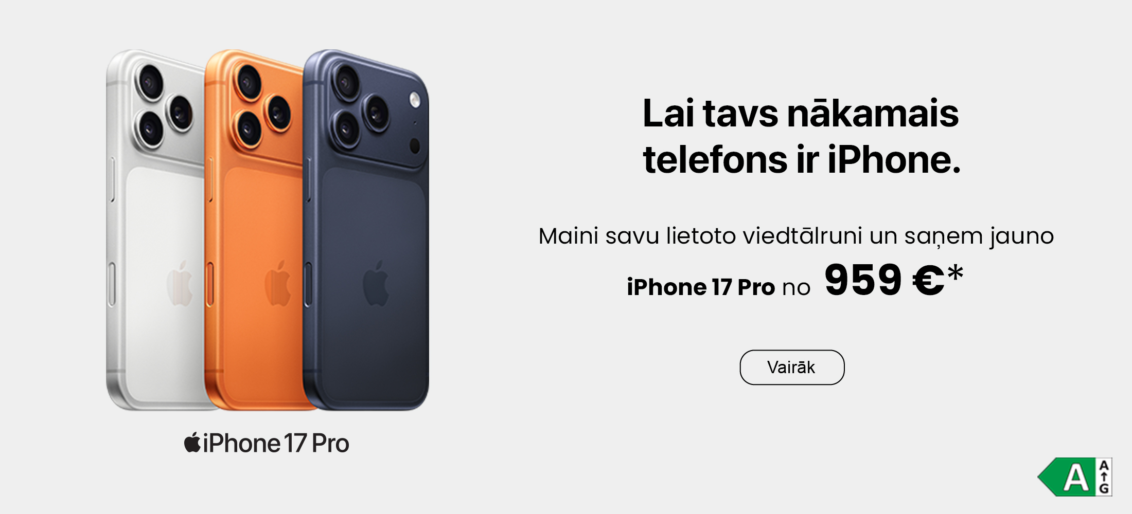 ◊ Testēšanu veica Apple 2025. gada jūlijā, izmantojot pirmsizlaides iPhone 17, iPhone Air, iPhone 17 Pro un iPhone 17 Pro Max ierīces un programmatūru, USB‑C uzlādes kabeli ar Apple 40 W dinamisko strāvas adapteri ar maks. jaudu 60 W (modelis A3351) un Apple MagSafe lādētājiem (1 m modeli A3502 un 2 m modeli A3503) ar Apple 30 W USB‑C strāvas adapteri (modelis A2164) vai Apple 40 W dinamisko strāvas adapteri ar maks. jaudu 60 W (modelis A3351). Ātrās uzlādes tests tika veikts ar izlādētām iPhone ierīcēm. Mērījumi veikti, sākot no Apple logotipa parādīšanās brīža pēc ierīces ieslēgšanas. Uzlādes ilgums ir atkarīgs no adaptera, iestatījumiem, lietojuma un apkārtējās vides apstākļiem; faktiskie rezultāti var atšķirties.